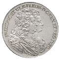 Åtsidan visar kungens porträtt i profil. Omskrift FRIDERICUS·D·G·REX·SVECIAE· [Fredrik med Guds nåde Sveriges konung].